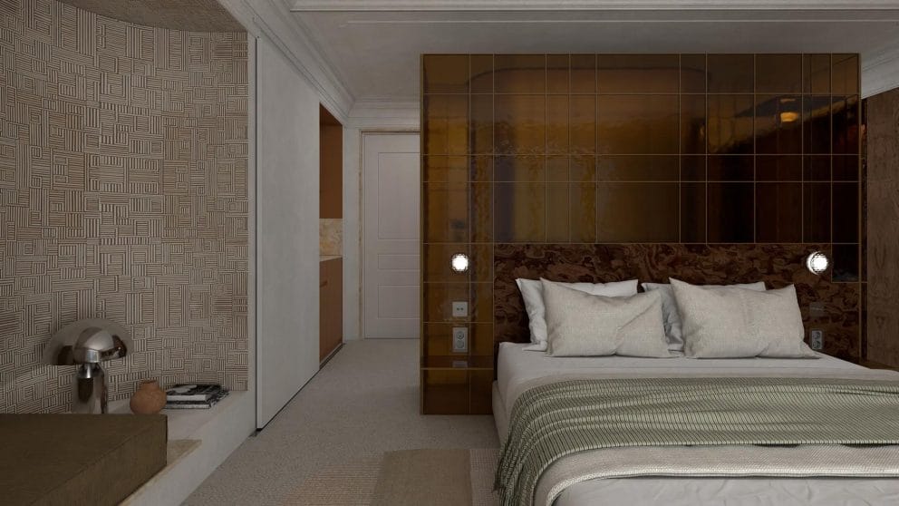 Bathed in Mediterranean light, the Panorama Superior Suite opens gracefully onto an expansive balcony overlooking the architectural charm of Athens. Airy interiors and refined finishes create a seamless dialogue between indoor comfort and the vibrant city beyond.