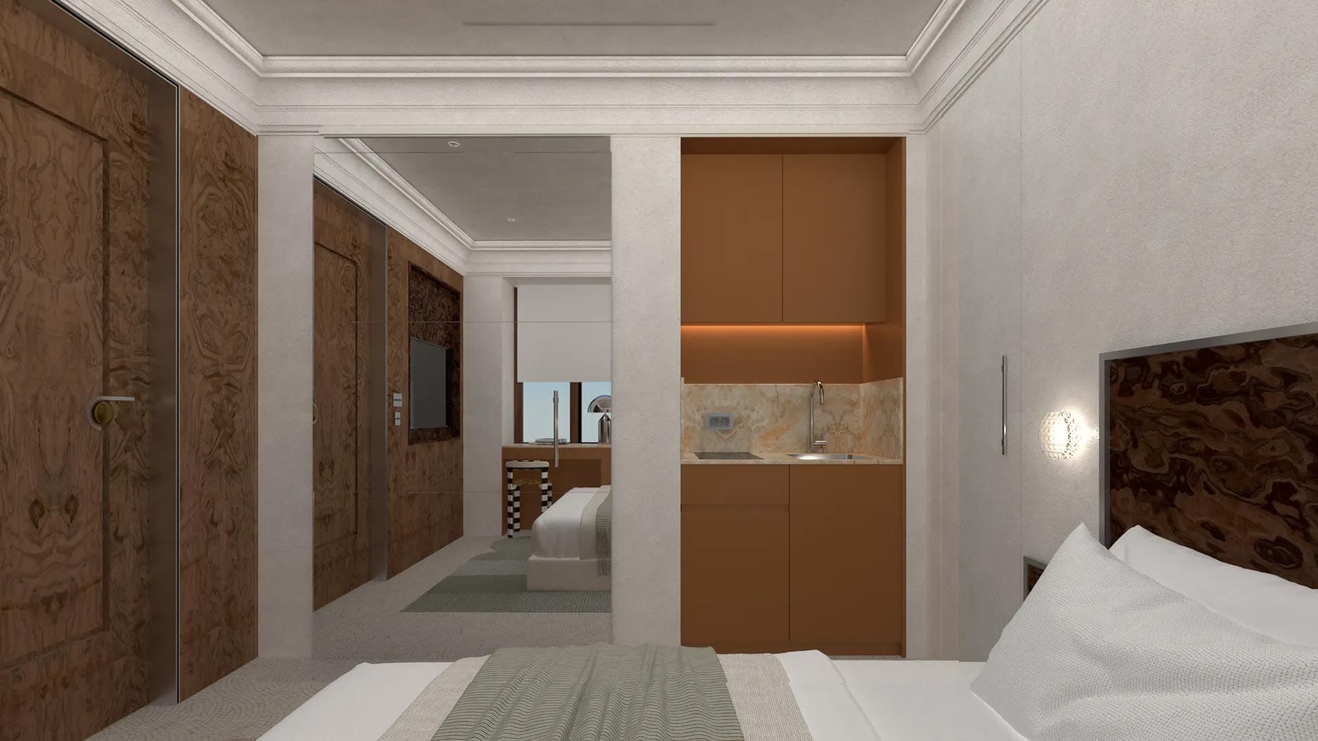 Designed for those who move with the rhythm of the city, the Signature Classic Room is a stylish urban haven in the heart of Kolonaki. Compact yet refined, it combines contemporary aesthetics with warm textures, creating a truly polished space.